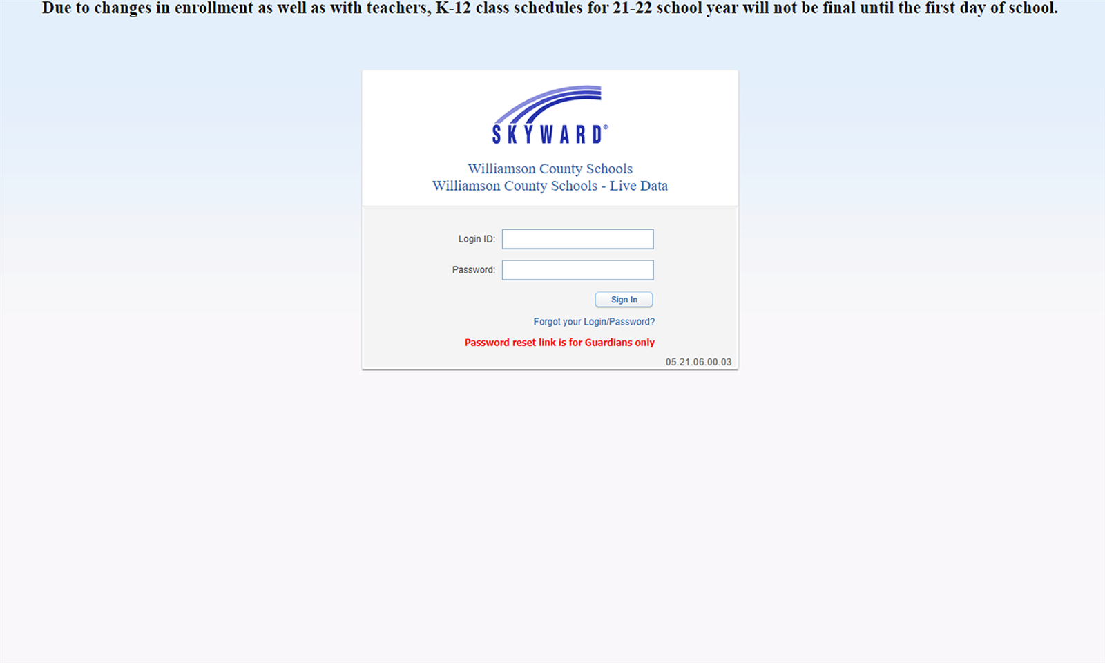 Information on Skyward is only available to account holders. Usernames and passwords for existing accounts will remain the same, and families may click on the "Forgot your Login/Password" link on the Skyward login screen to retrieve their information. Families without an account should contact their child's school.